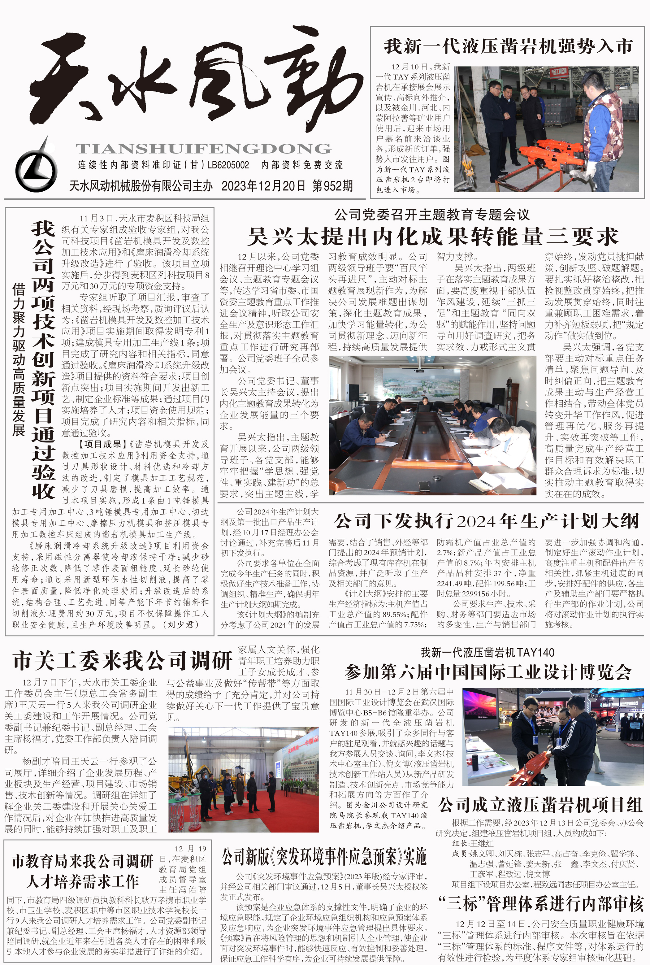 企業(yè)報(bào)《天水風(fēng)動(dòng)》第952期